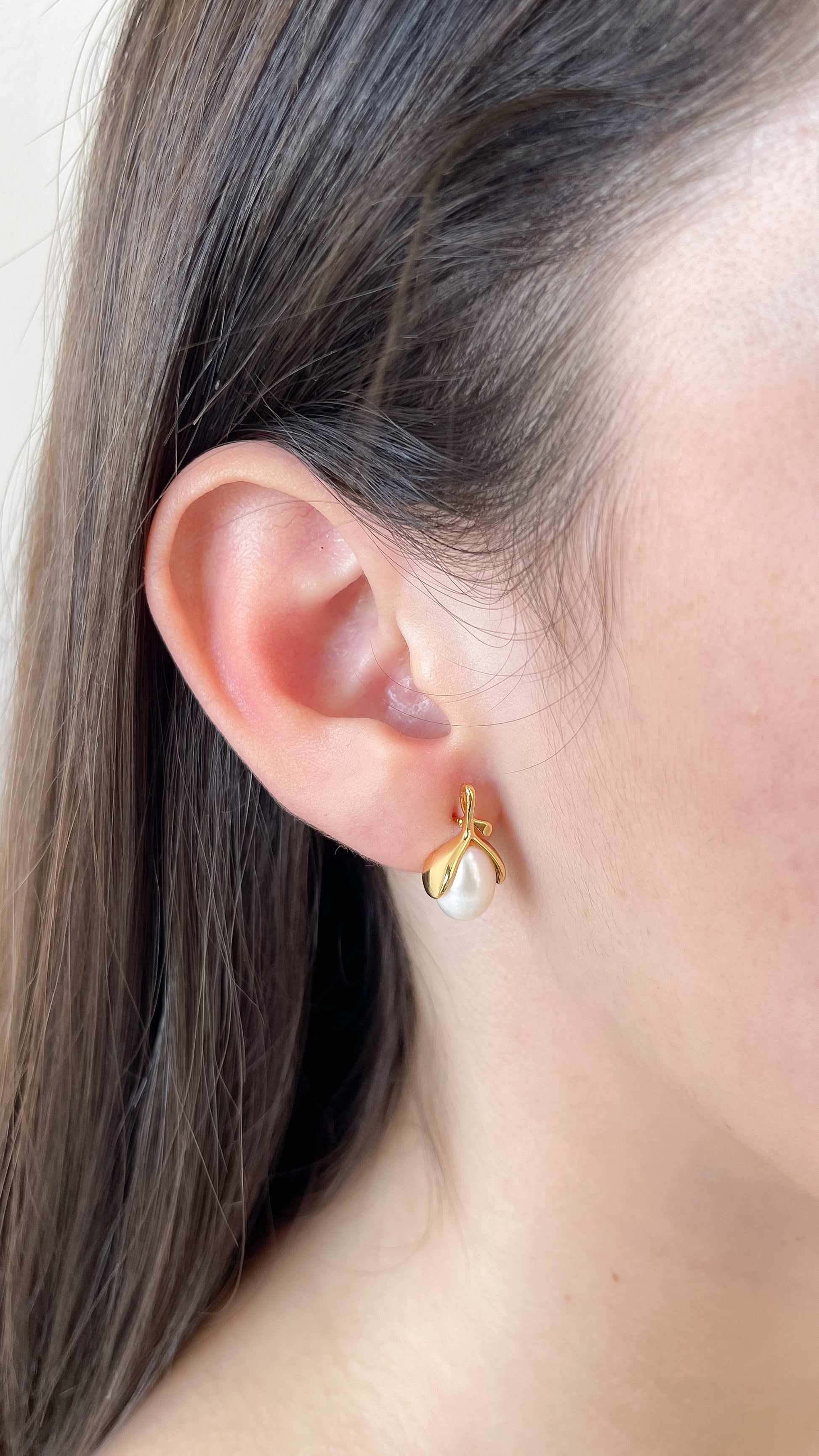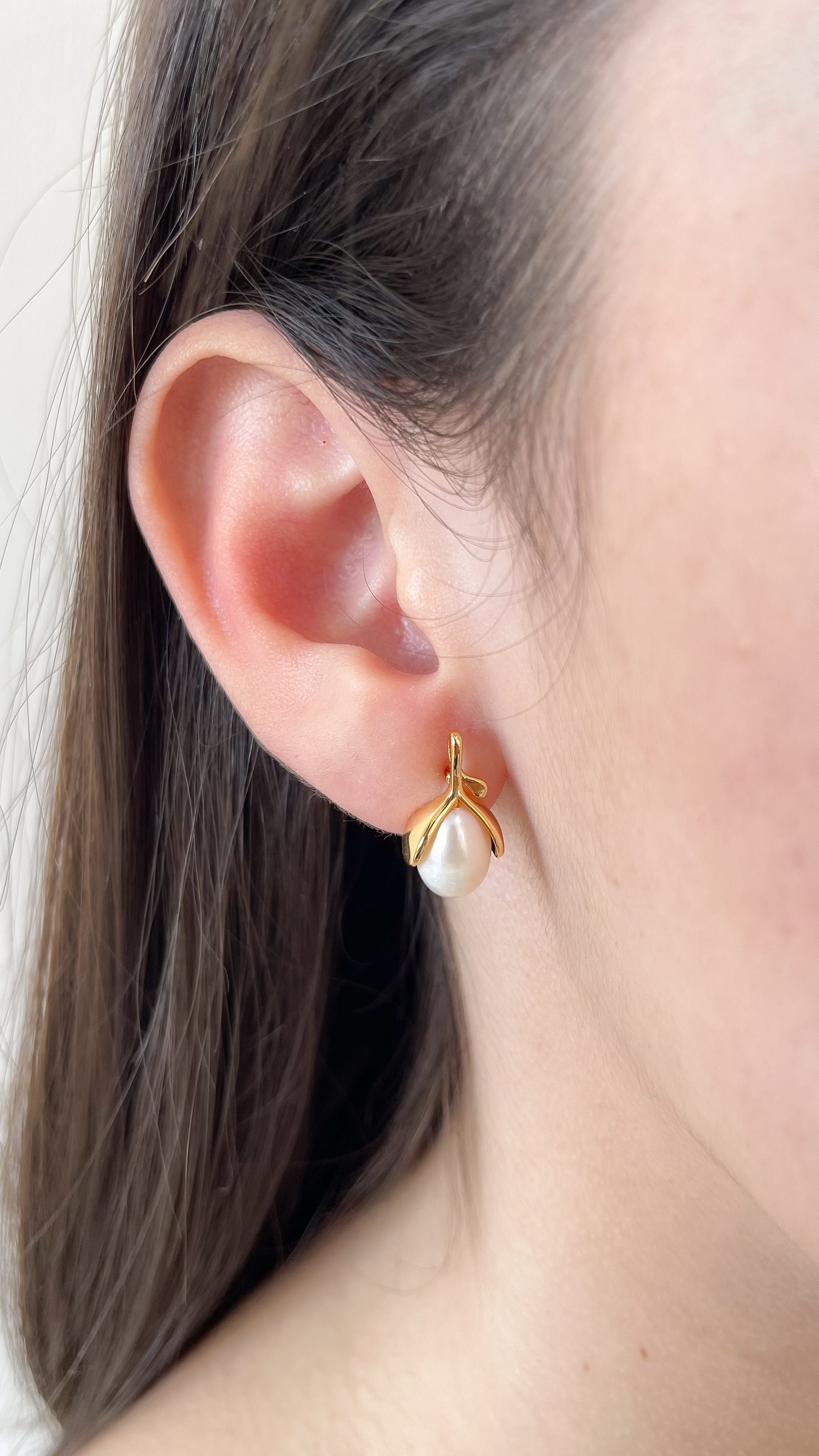 - Aretes delicados & sutiles de perla en forma de flor.